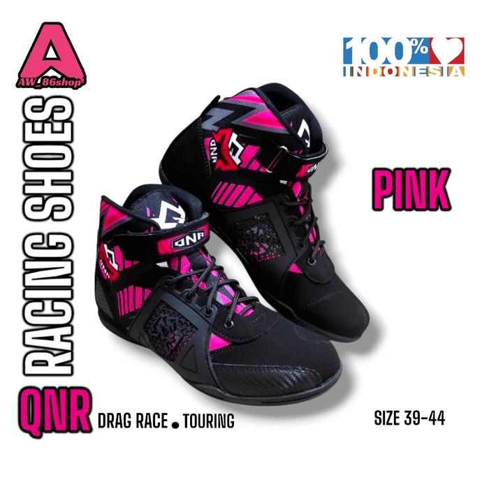 SEPATU BALAP DRAG RACE ROAD RACE QNR RACING SHOES BIKERS BLACK PINK OUTDOOR SPORT KARET BOOTS CROSS TRAIL - BLACK PINK, 39