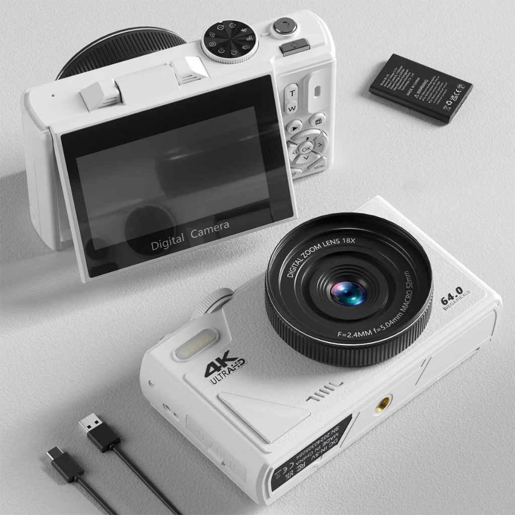 4K Kamera Digital WiFi 75MP Zoom 18X Layar Swafoto Flip 180° 64MP Video4K Vlog Ringkas DSLR Travel Pemula