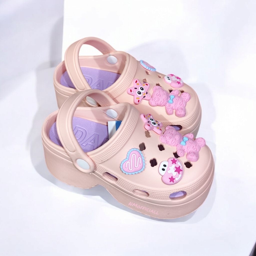 sandal anak Sandal Anak Perempuan Baim Tebal Karet Eva Non Slip Fashion Warna Pink Jibbitz Bear Sendal Slop Anak Cewek T