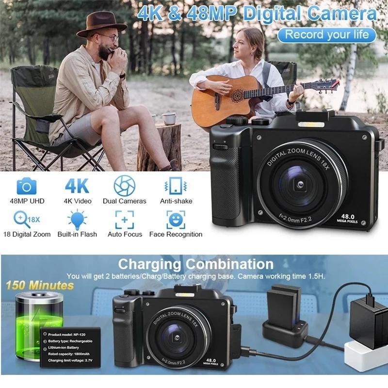 NEW 64MP 18X WIFI Digital Kamera Kamera Mirrorless Profesional 4K Fokus Otomatis untuk Vlog Video Perjalanan Pelajar