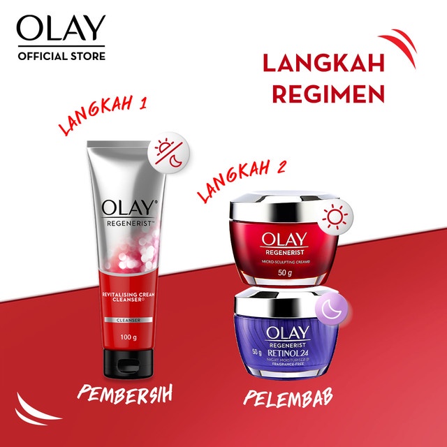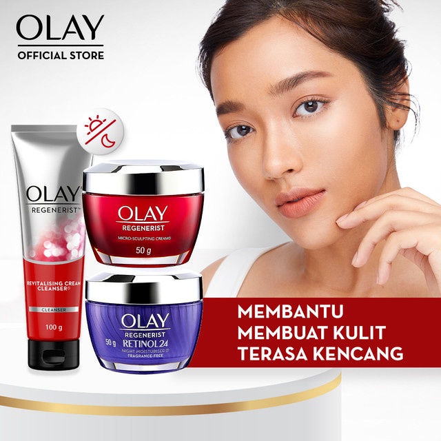 Olay Regenerist Set Lengkap Sabun Cuci Muka Cleanser & Pelembab Pagi & Retinol 24 Pelembab Malam Krim Moisturizer Anti A