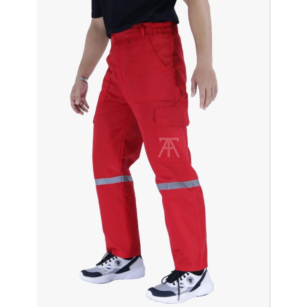 (DIKIRIM DARI BANDUNG) Celana Panjang Kerja Strip Reflektif Wearpack Safety Proyek Hitam Biru Navy