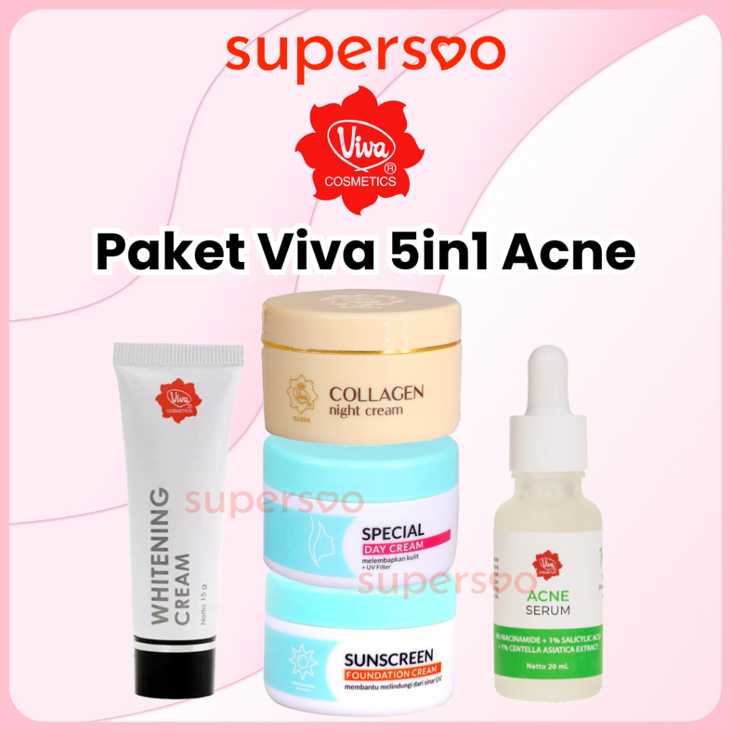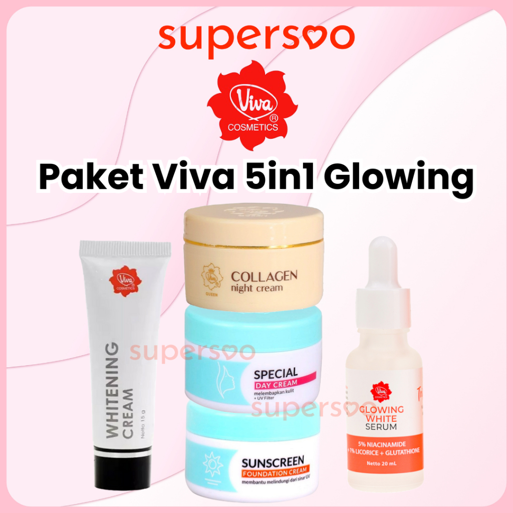 Paket Viva Skincare 5in1 Glowing Mencerahkan Jerawat Anti Penuaan Kusam Flek Hitam