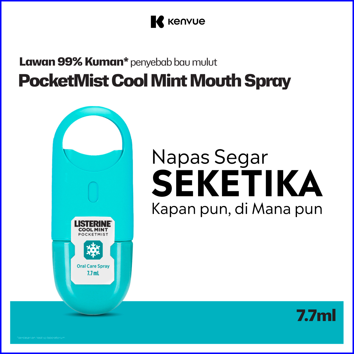 Listerine Pocketmist Cool Mint Mouth Spray Untuk Napas Ekstra Segar Seketika Lawan Bau Mulut - 7.7ml