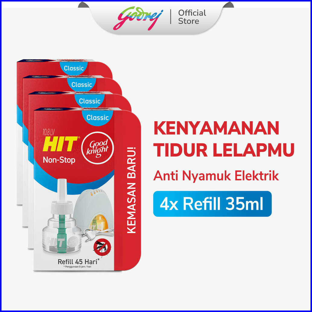 Hit Good Knight Non Stop Refill Classic 45 Hari X4- Refill Obat Nyamuk Elektrik - Bunuh Nyamuk Penyebab Demam Berdarah D