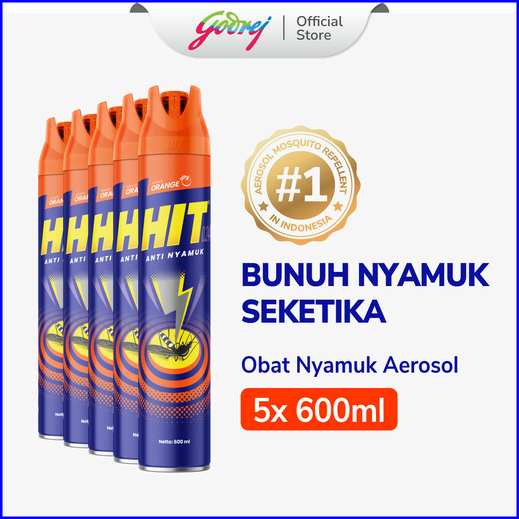 Hit Aerosol Orange 600ml X5 - Obat Nyamuk - Bunuh Nyamuk Penyebab Demam Berdarah Dbd