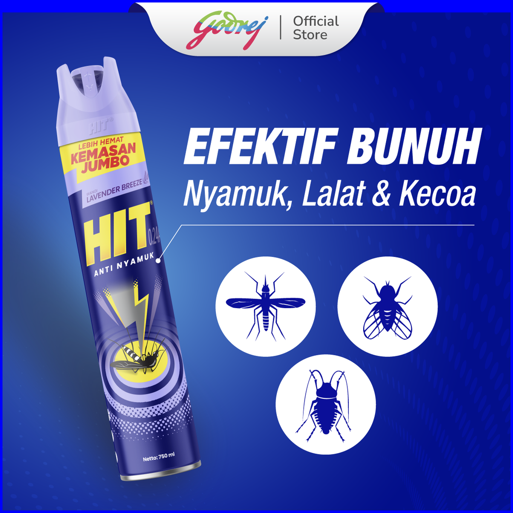 Hit Aerosol 750ml Lavender Breeze - Obat Nyamuk - Bunuh Nyamuk Penyebab Demam Berdarah Dbd 750 Ml