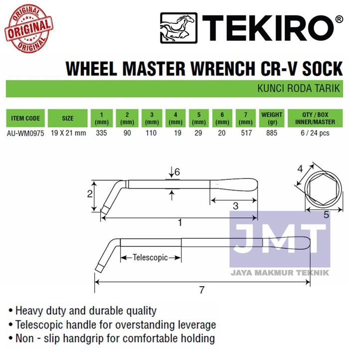 TEKIRO KUNCI RODA MOBIL TARIK TELESCOPIC WHEEL MASTER WRENCH 19 X 21MM