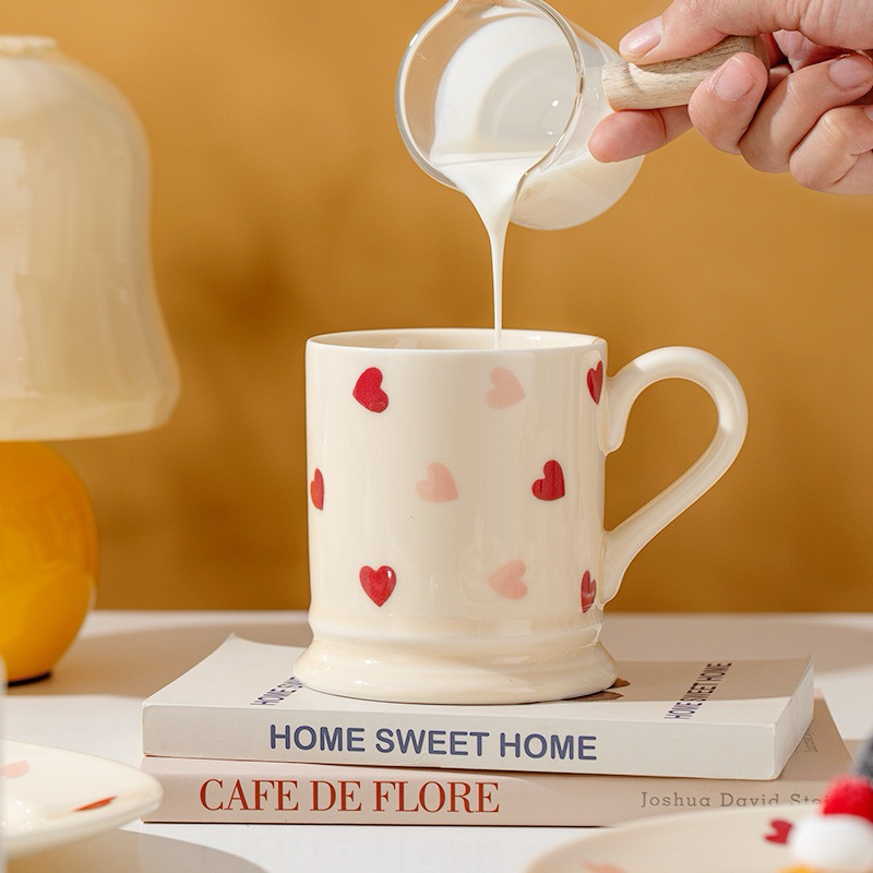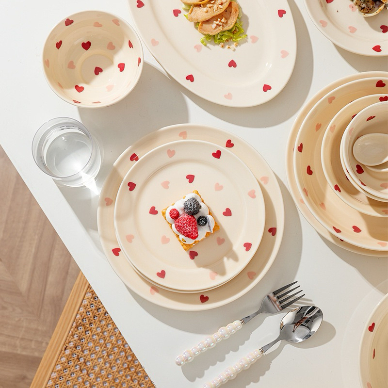 Piring Mangkok Gelas Keramik Motif Hati Love Heart Kecil Estetik ala Korea / Piring Cafe Hotel / Piring Mangkok Canti /