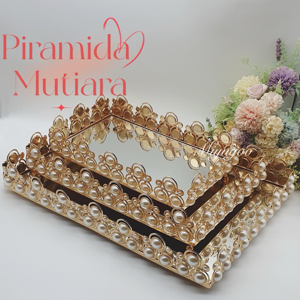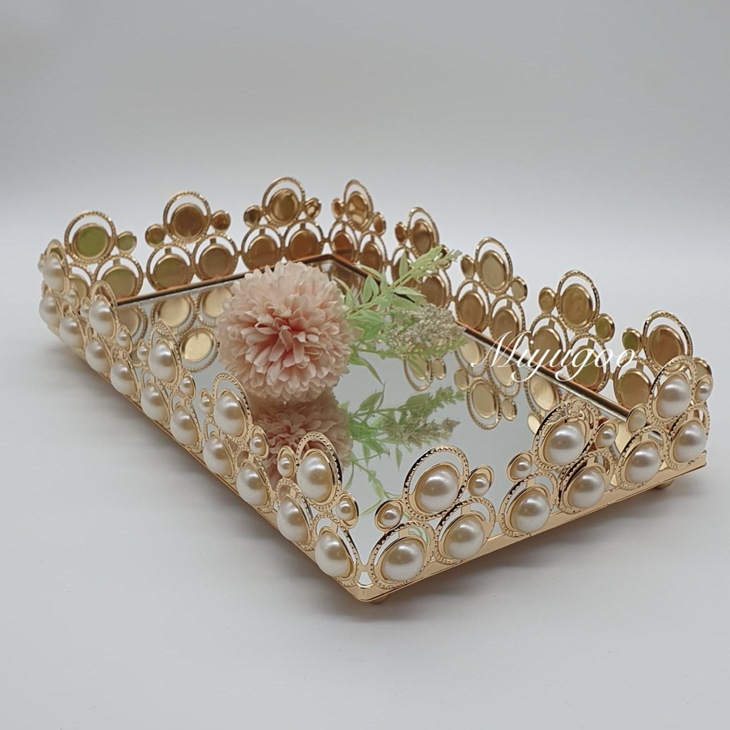Nampan Piramid Mutiara Tray ASLI KACA- Nampan pearl Vintage Modern nampan kristal / tray gold manik mutiara ❌❌ nampan s