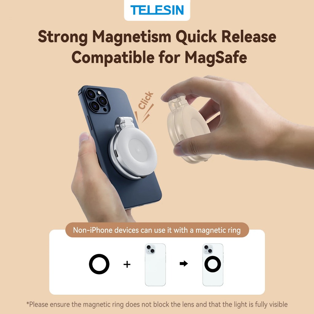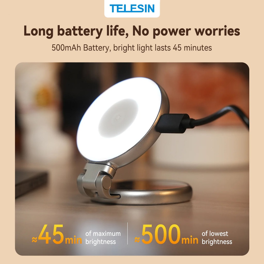 TELESIN C03 Magnetic MagSafe Selfie Ring Light With Make Up Mirror For Smartphone Handphone HP Portable Beauty LED Fill