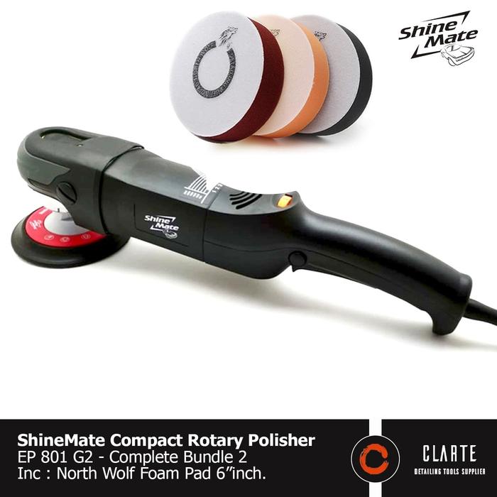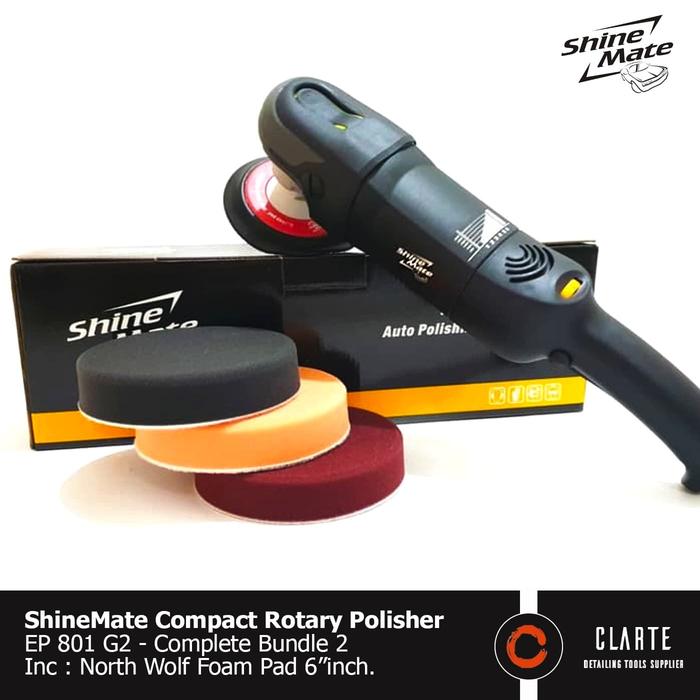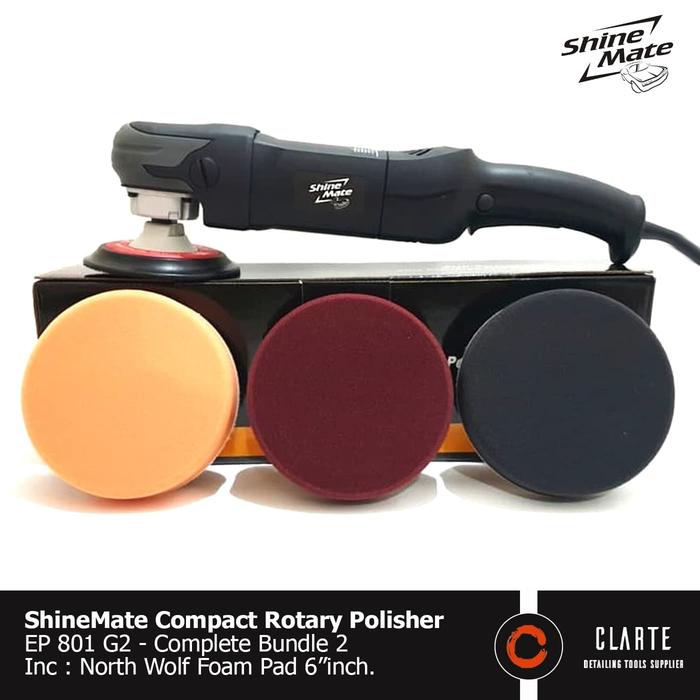 PAKET MESIN POLES SHINEMATE EP801 G2 PLUS FOAM PAD 6 INCH CAR POLISHER HANDLE ORANGE