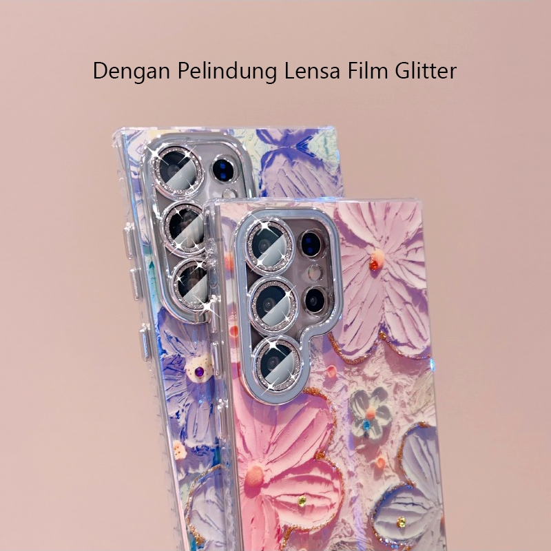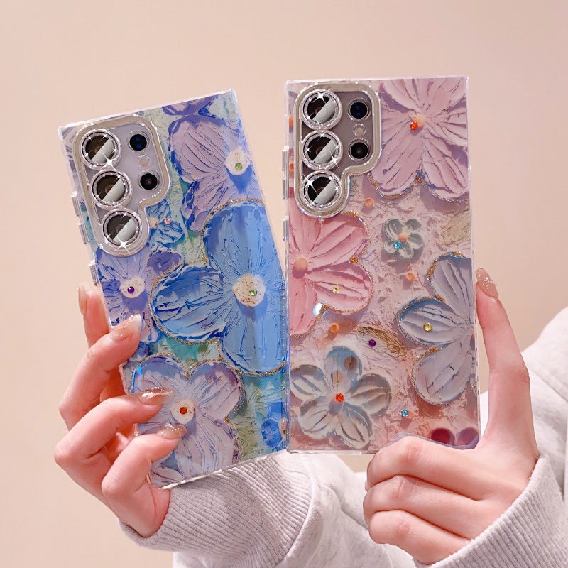 [Star] CrashStar Blue Light Diamond Oil Painting Flower Phone Case For Samsung Galaxy S25 Ultra S25+ S24 S23 S22 Ultra Fashion