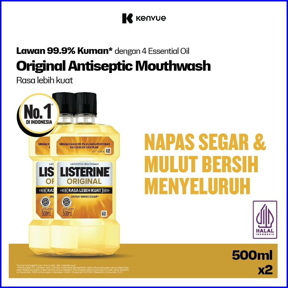 Listerine Original Antiseptic Mouthwash Obat Kumur Antiseptik 500ml - Isi 2