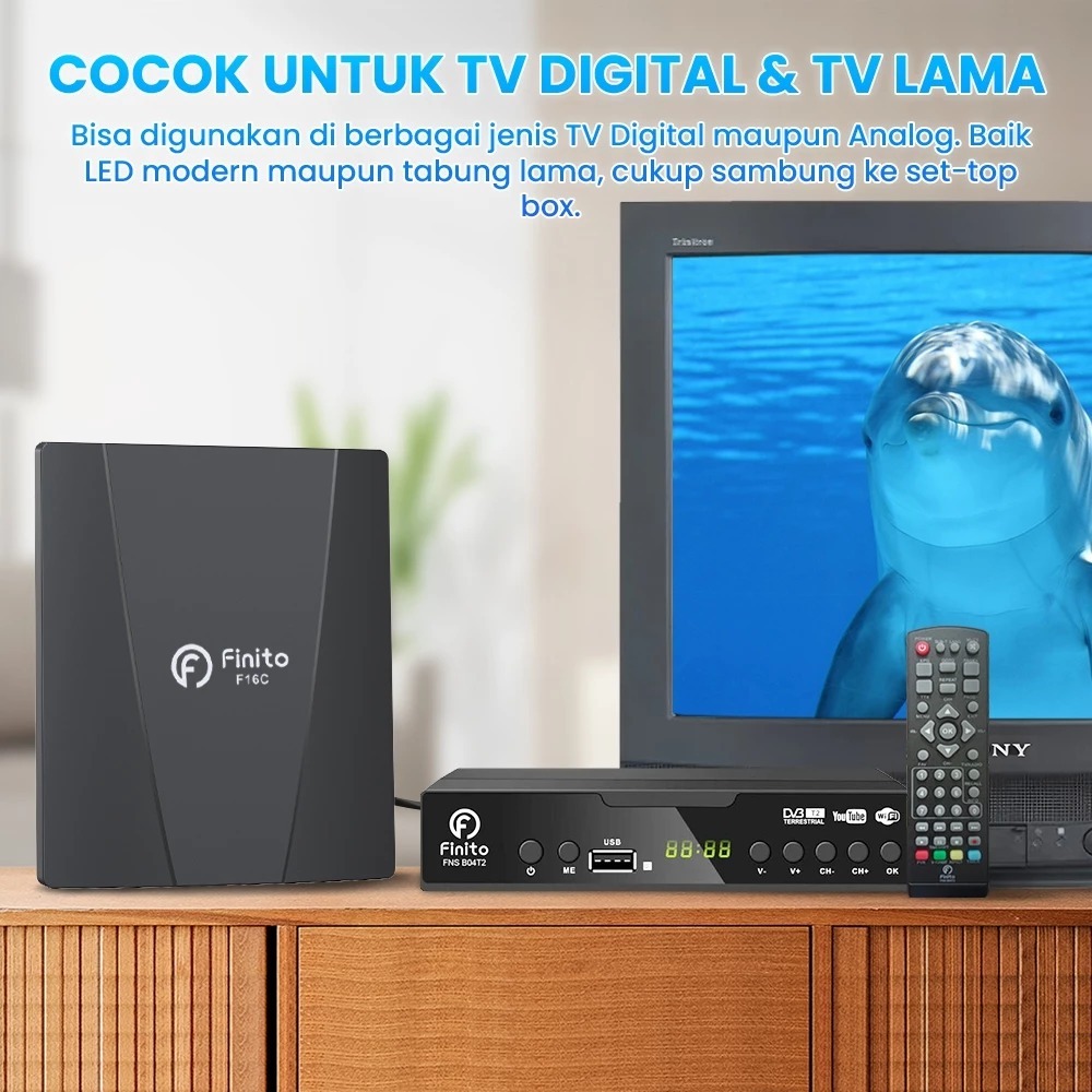 Antena TV Smart Digital Finito Type F16C Intra Version Indor Outdoor 4K USB Garansi Support STB