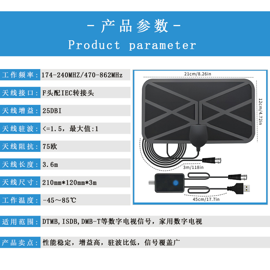 Antena TV Digital Indoor DVB-T2 25dB Spider Jack Male Plug