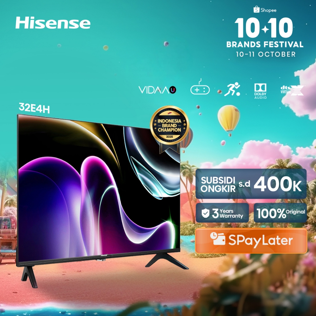Hisense TV 32E4H Vidaa Smart Digital TV 32 inch HD Desain Bazelles DTS V X & Dolby Audio Youtube/Netflix/Prime Dual Band