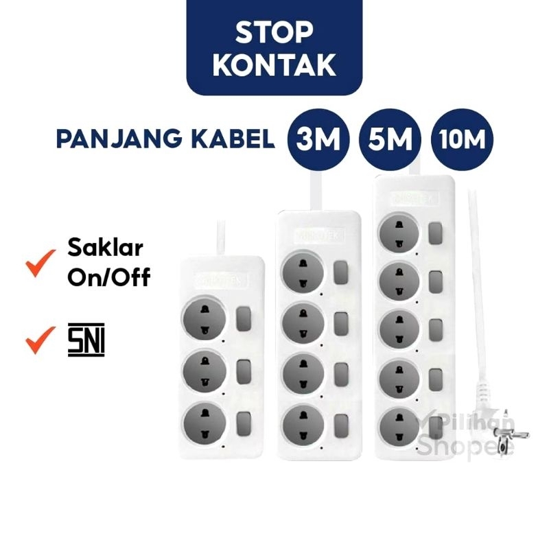 Stop Kontak Kabel + Switch (Setiap Lubang) 3m 5m 10m Mikotek MT 8346 - StopKontak Kabel Roll