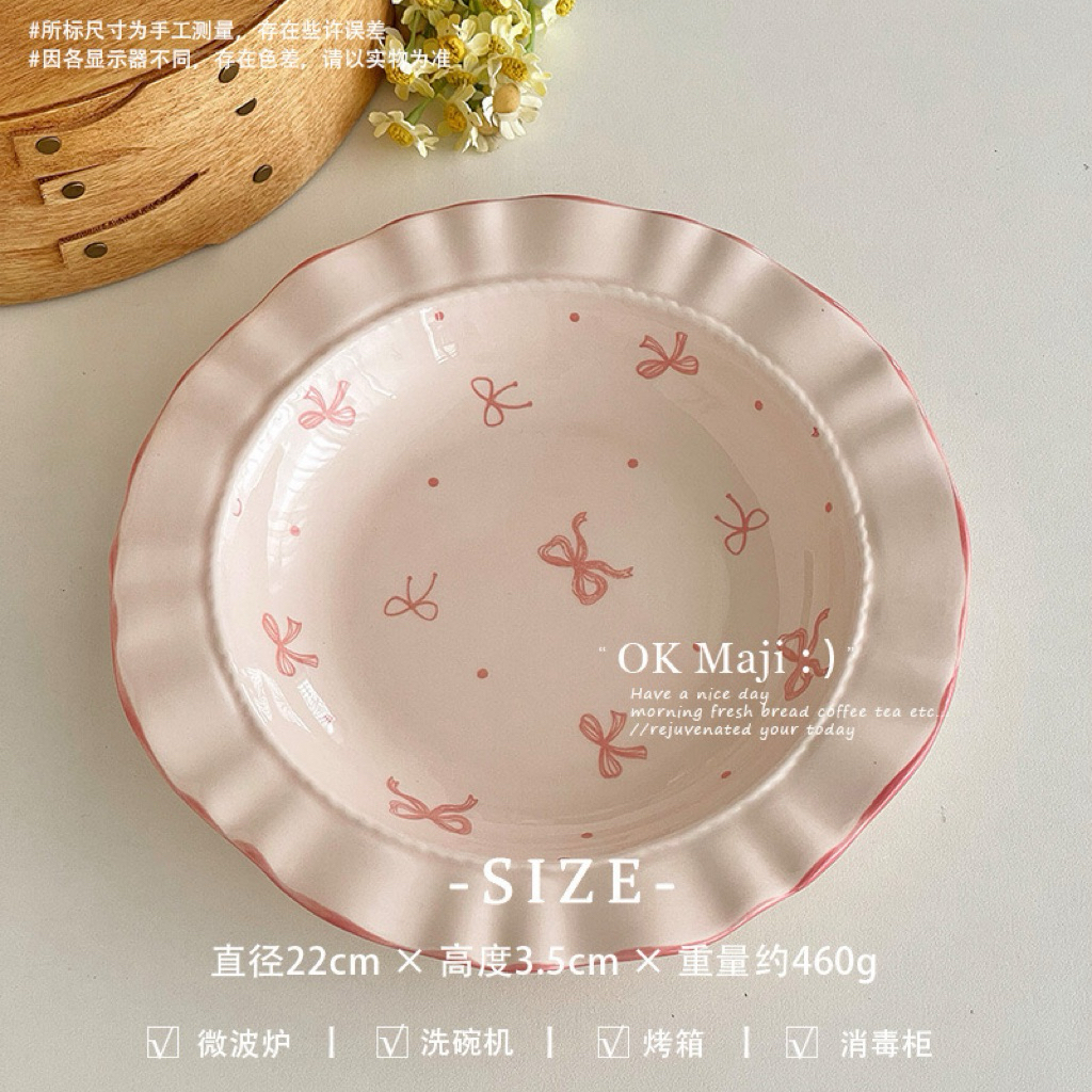 Piring Keramik Coquette Pink Motif Pita Lucu Plate Keramik Cantik 22cm