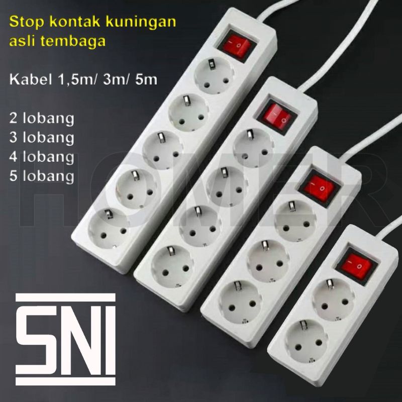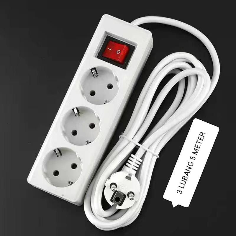 STOP KONTAK , 3 , 4 , 5 , Lubang Panjang Kabel 5 Meter , Colokan Listrik , + saklar SNI
