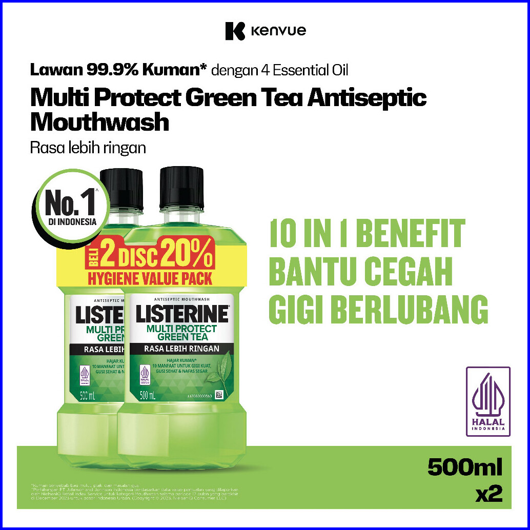 Listerine Green Tea Mouthwash Obat Kumur 500 Ml - Isi 2