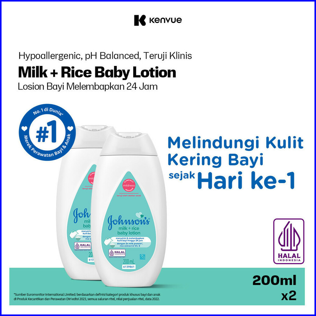 Johnson S Milk Rice Baby Lotion - Losion Bayi 200ml - Isi 2