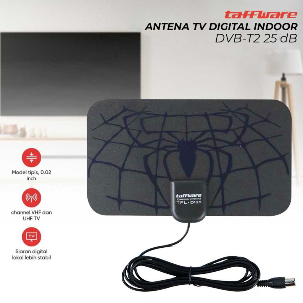 Taffware Antena TV Digital Indoor DVB-T2 25dB Spider Jack Male Plug - TFL-D139