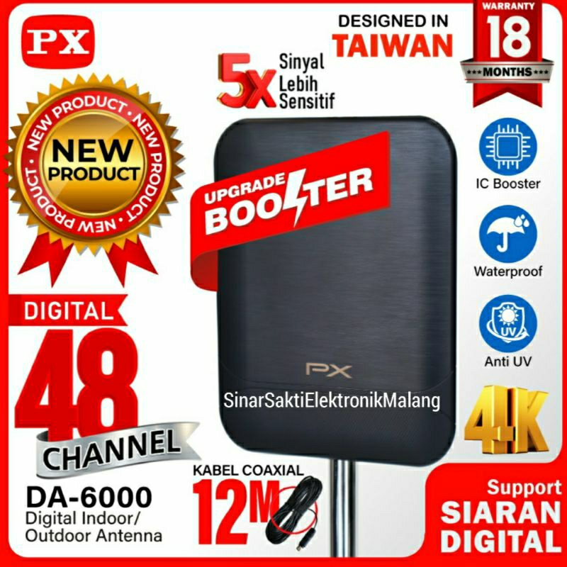 Antena TV Digital Indoor Outdoor PX DA 6000 Antenna Booster Anten TV DVBT2 4K PX DA6000