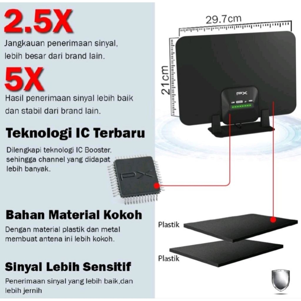 Antena TV Digital Booster LED Dinding Indoor DVB-T2 PX UDA-7000A