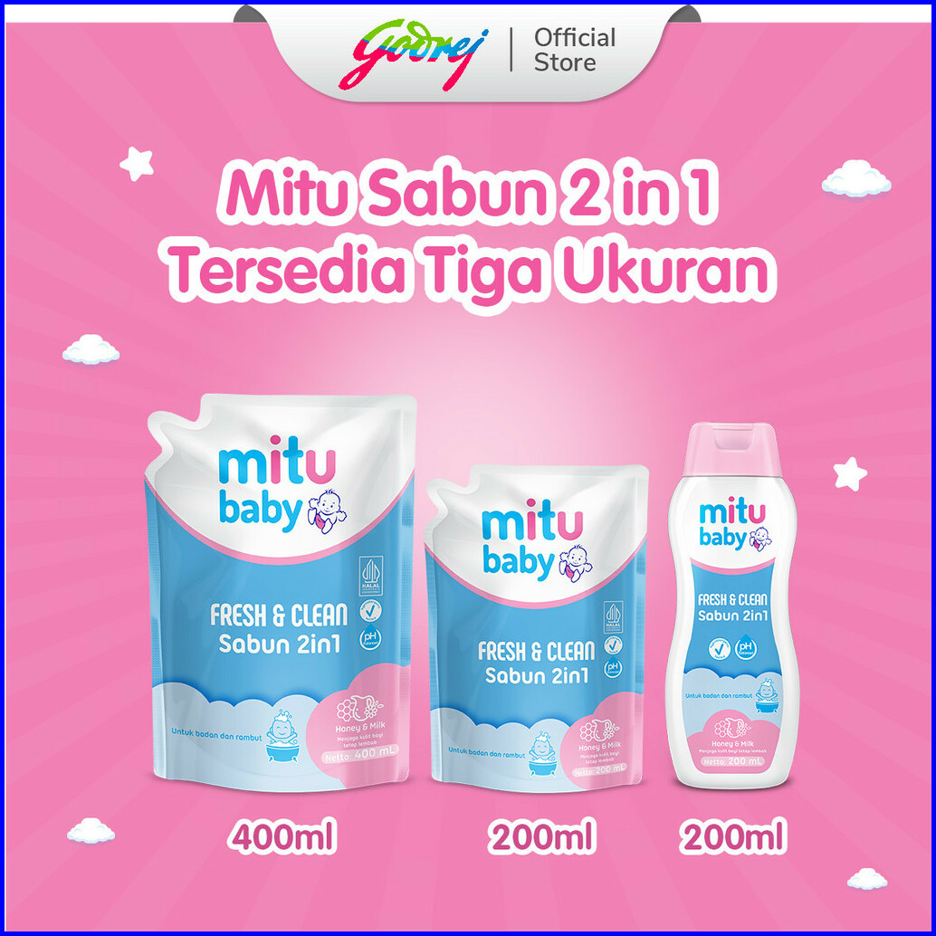 Mitu Baby Liquid Soap 2in1 Refill 400 Ml X 2 - Sabun Mandi Bayi