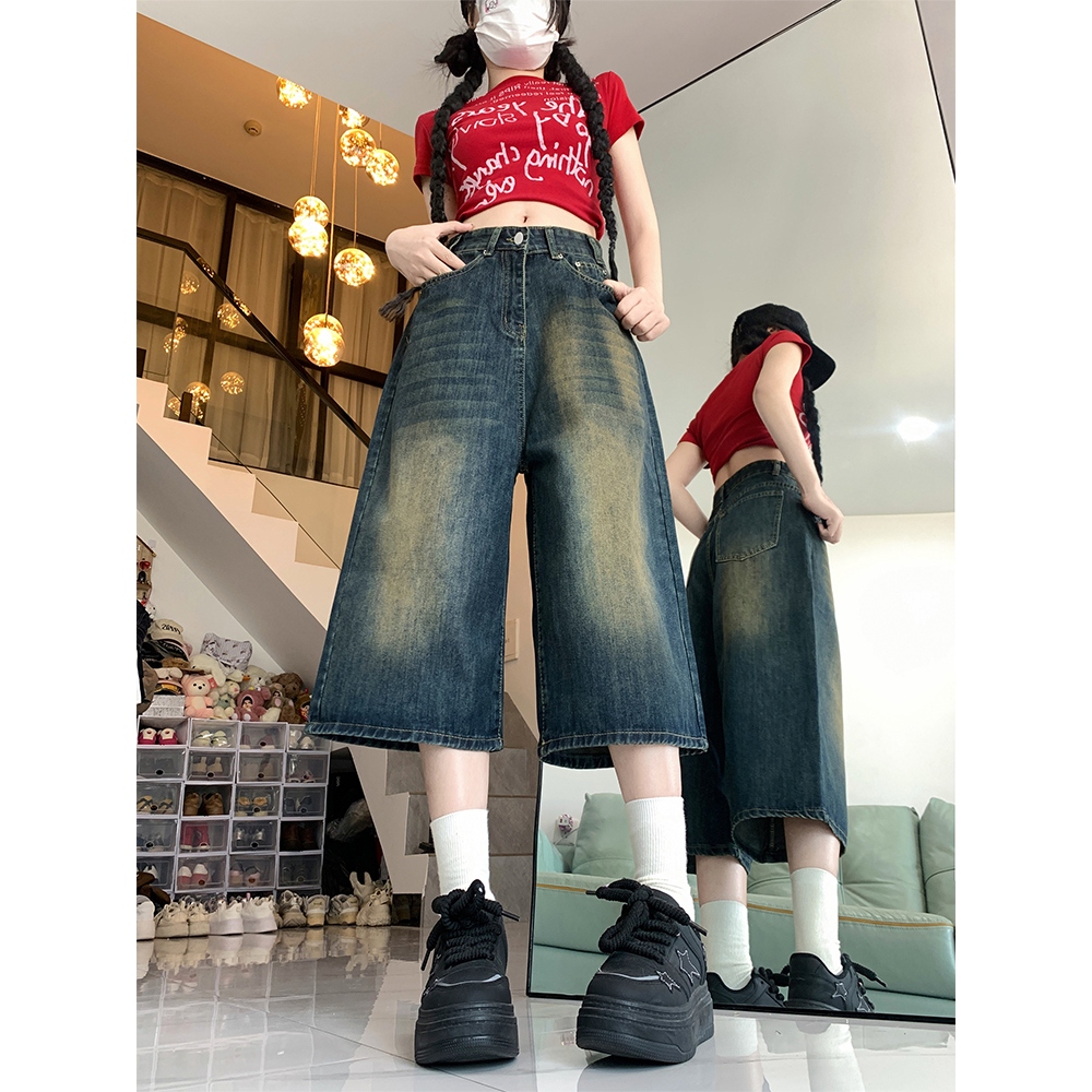 Vintage Biru Pants Jumbo Celana Jenas Panjang Wanita Celana 7/8 Kulot Baggy Jeans Wanita Hw Celana Korea Pants Hot Pants