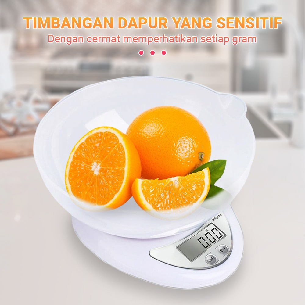 Timbangan Dapur 5KG Digital Kue Bumbu Mangkok Kitchen Scale Multifungsi / FREE BATERAI dan Mangkok