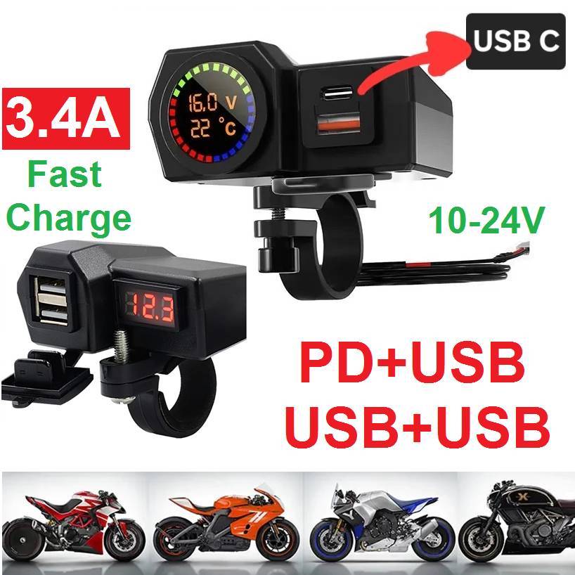 [Star] Motorcycle Digital Voltmeter Charger Motor Cas HP Motor 2 USB 3.1A 3.4A PD Type C Dual USB Casan Hp stang Universal Dual