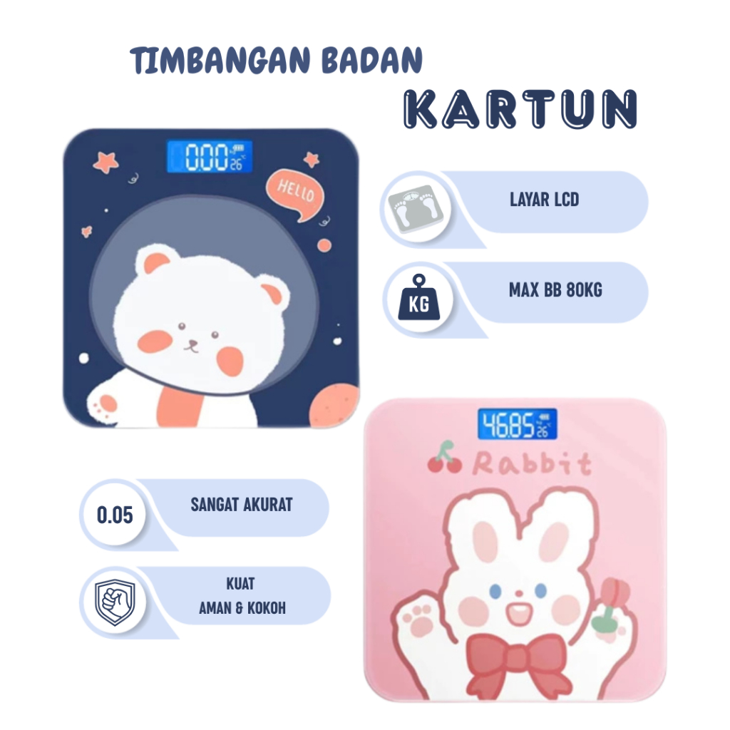 Timbangan Kaca Digital 180kg dengan Motif Kartun Lucu