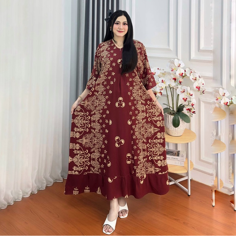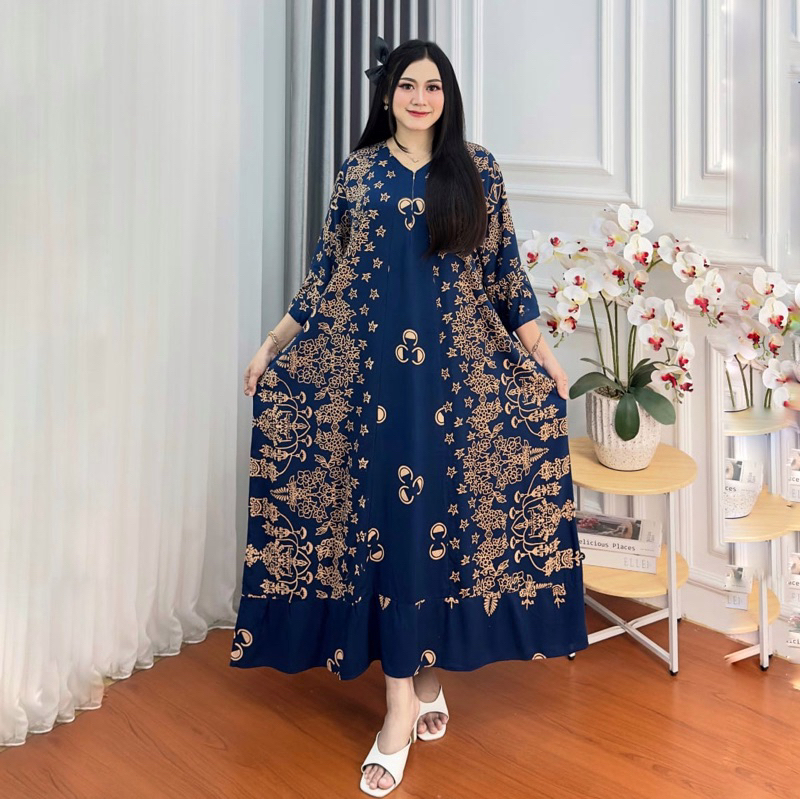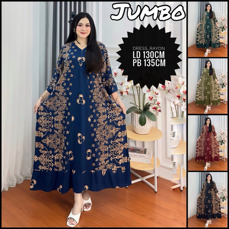 KAILA DRESS KOMBINASI LENGAN 3/4 JUMBO LD 130 GAMIS VIRAL TERBARU KAIN RAYON PREMIUM MURAH KEKINIAN