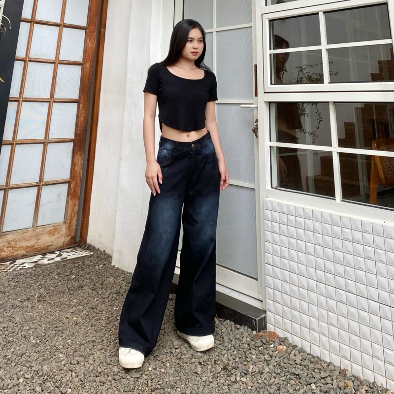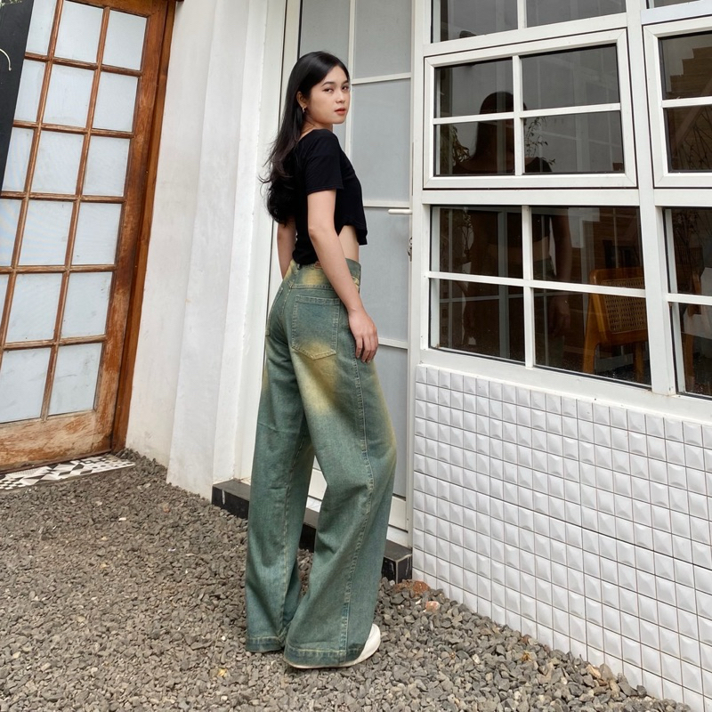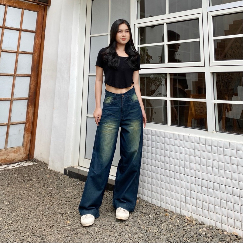 Highwaist Bagy Jeans Wishker Celana Skena Kekinian Korean Style Loose Denim Unisex