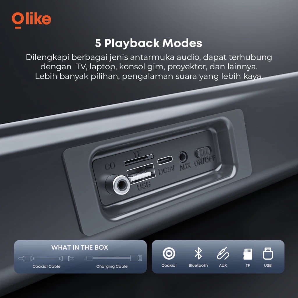 Olike Speaker TV Soundbar S10H Home Theater 10W Subwoofer Bluetooth 5.4 Bass Max Technology Immersive Sound 5 Modes Play