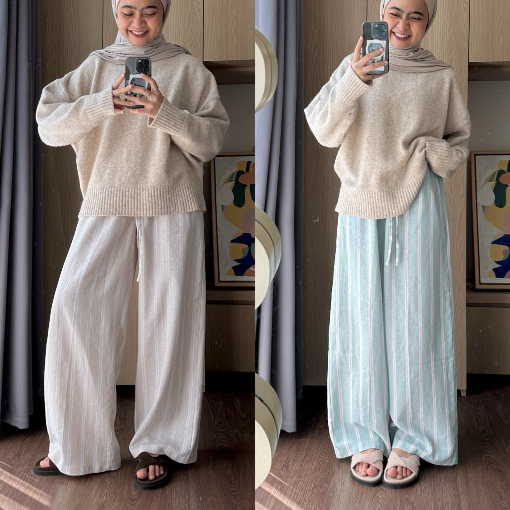 Outerres - Rue Stripes Pants | Celana Kulot Panjang Highwaist Linen Salur Wanita