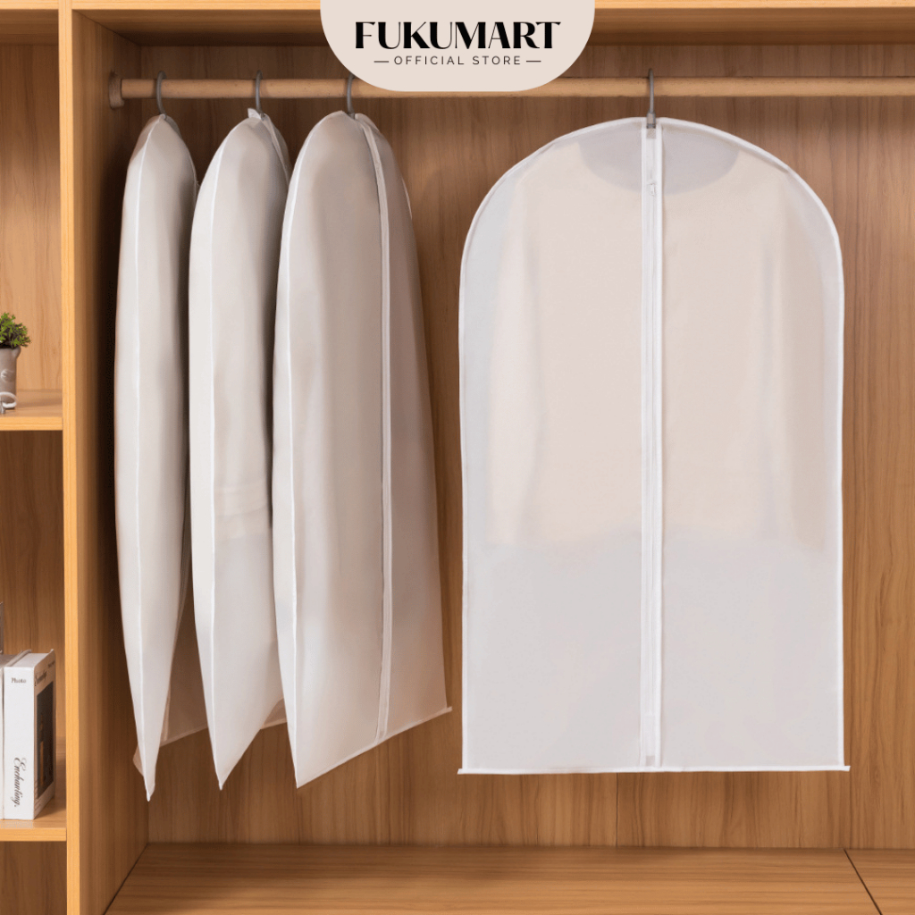 FUKUMART Cover Plastik Pelindung Baju Jas Dress Resleting Anti Air Anti Debu Organizer Lemari Pakaian