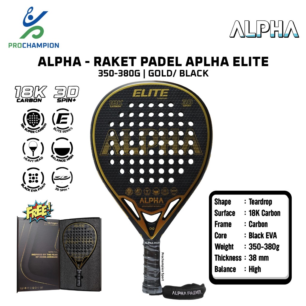 Raket Padel ALPHA Elite 350-380g Gold Black