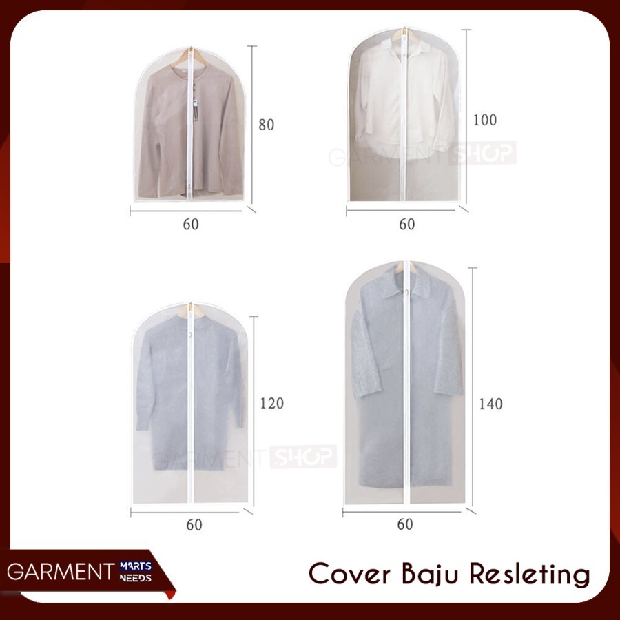 Plastik Cover baju gantung Pelindung baju gantungan kantong anti debu / Cover Baju Transparan Gantungan Resleting Anti D