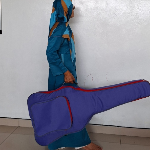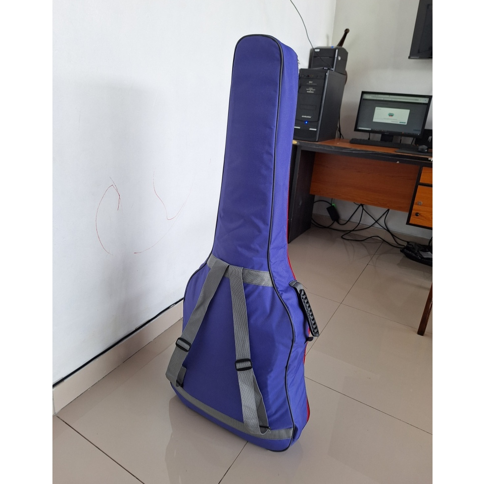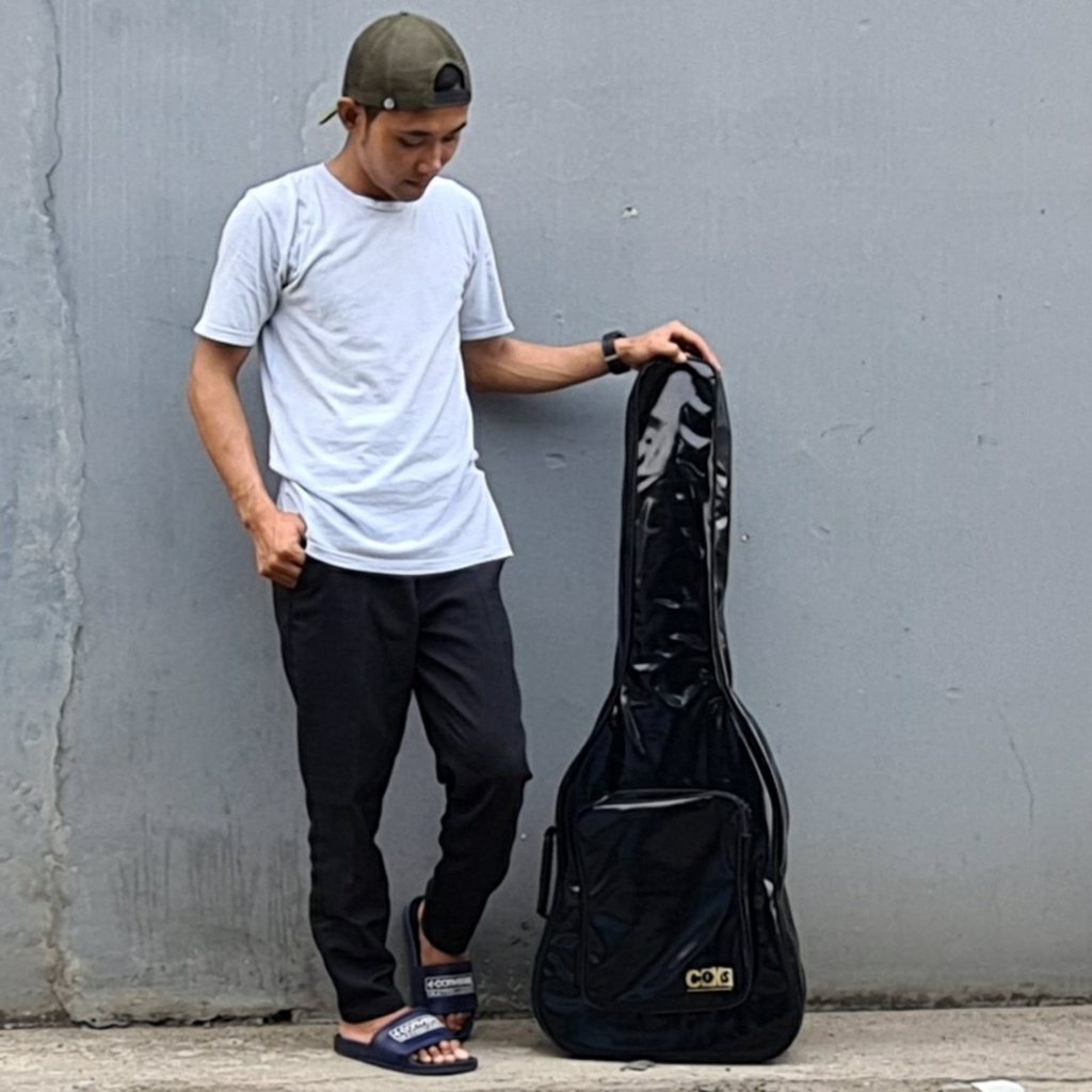 Tas gitar akustik jumbo p 110cm l bawah 45cm tebal badan 12cm besar bahan lak hitam mengkilap waterproof harga grosir