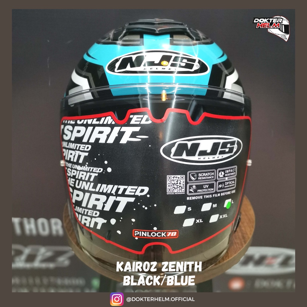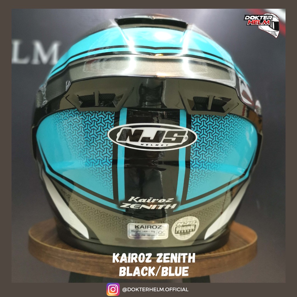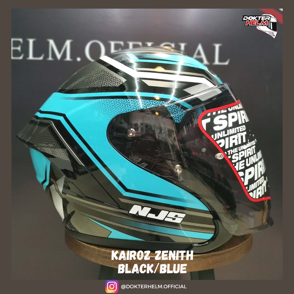 HELM NJS HALF FACE KAIROZ MOTIF ZENITH BLACK BLUE GLOSSY DOUBLE VISOR HELMET
