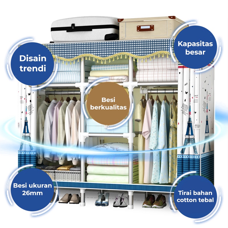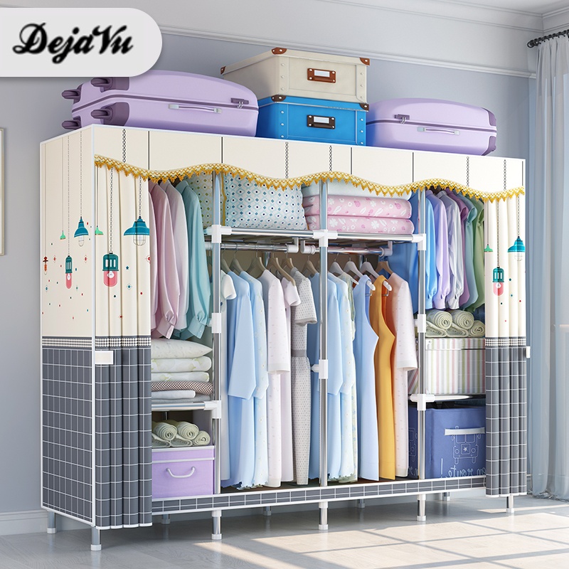 Dejavu Lemari Pakaian Kain Portable Rak Baju Susun Tirai Kain Jumbo Anti Debu Lemari Baju Gantung Rak Organizer Penyimpa
