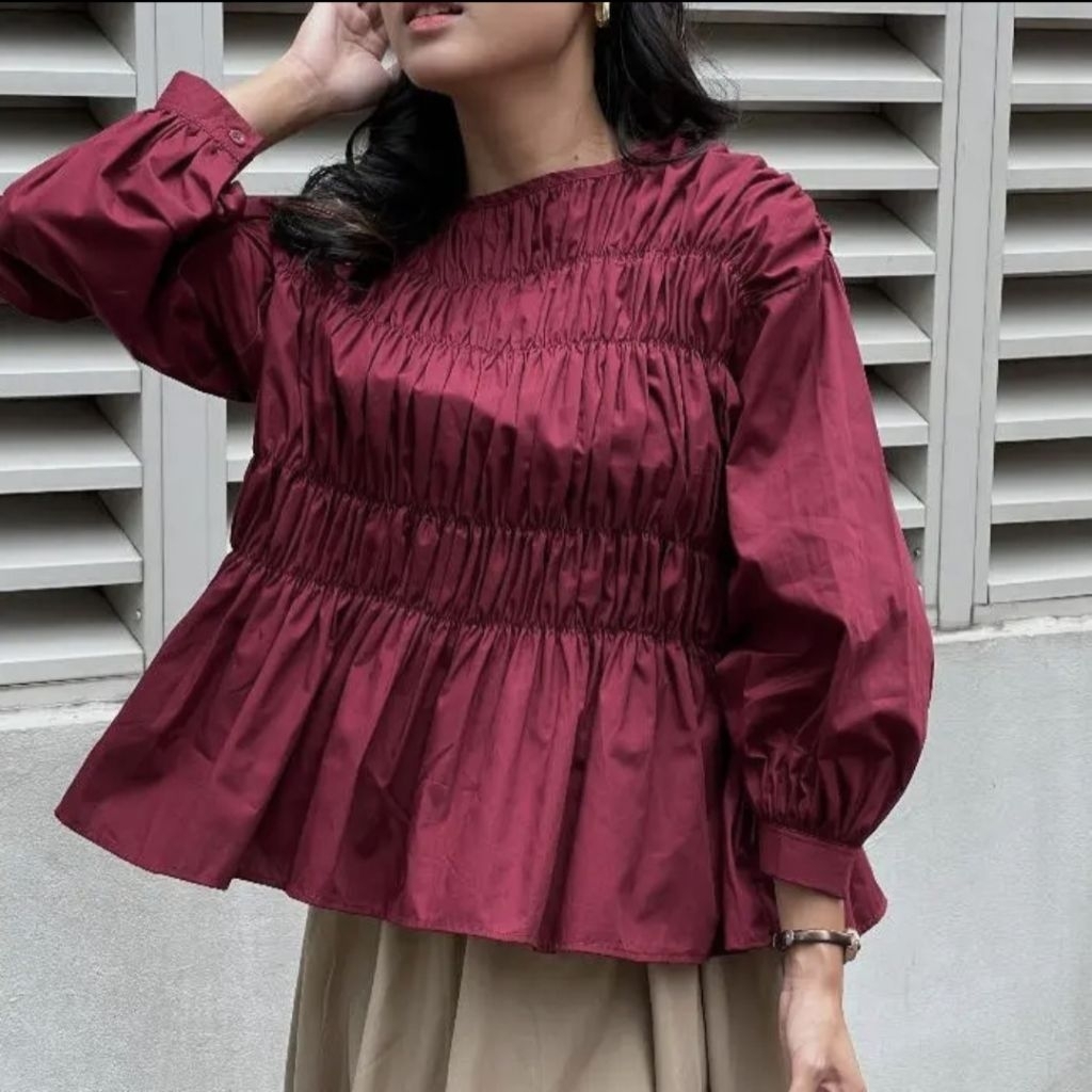 Pamela Shired Blouse - Atasan Kerut Wanita