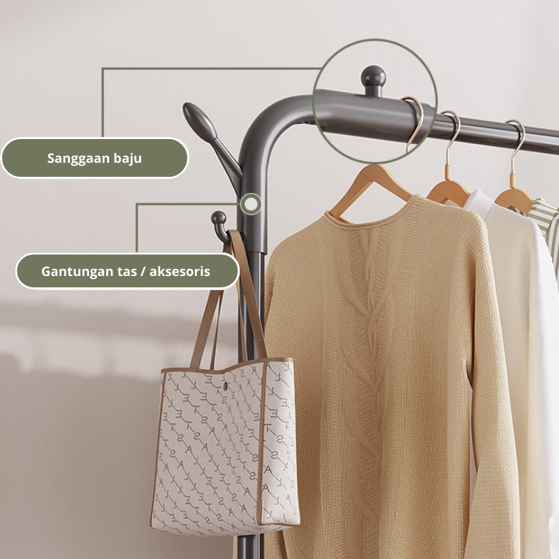 Dejavu Rak Baju Gantungan Stand Hanger Besi Rak Pakaian Gantung Tempat Sepatu Jemuran Single HSH118