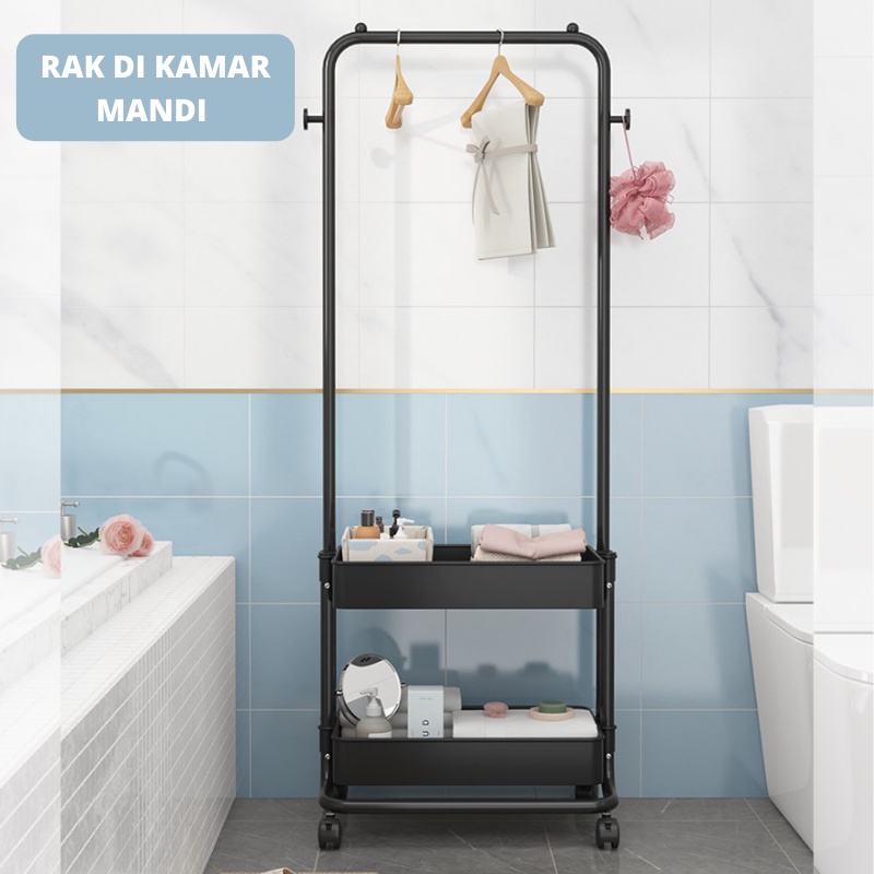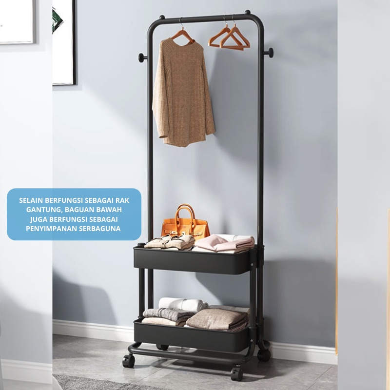 Dejavu Rak Gantungan Baju Roda Stand Hanger Gantung Pakaian Tempat Penyimpanan Tas Buku Baju HRK508