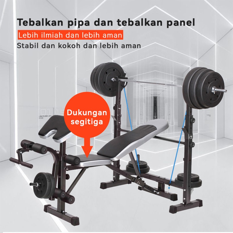 Bench Press Adjustable Multi Gym Weight Bench Barbell Alat Olahraga Rumahan Fitness