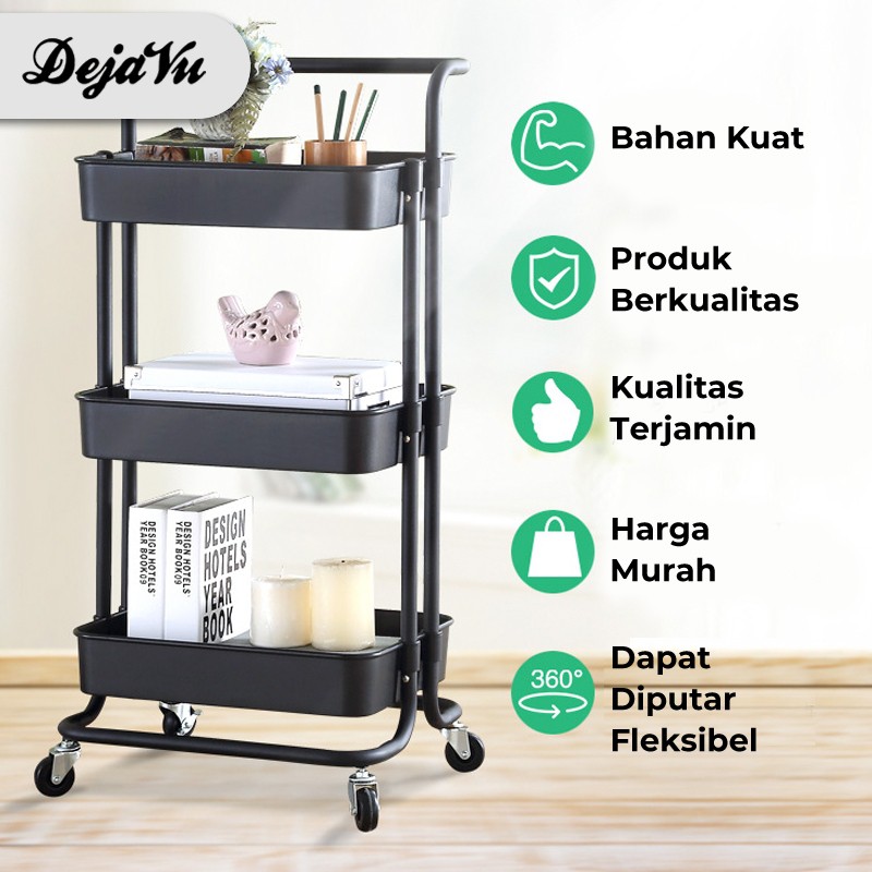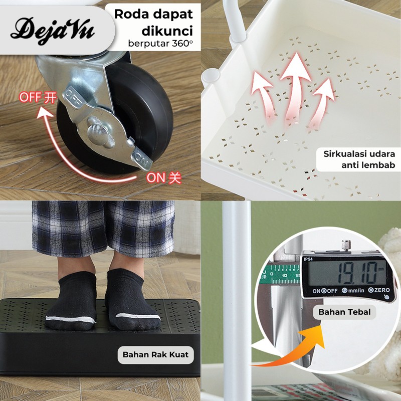 Dejavu Rak Troli Dapur Dorong Serbaguna Rak Salon Kamar Mandi Removable Rak Penyimpanan HRK502