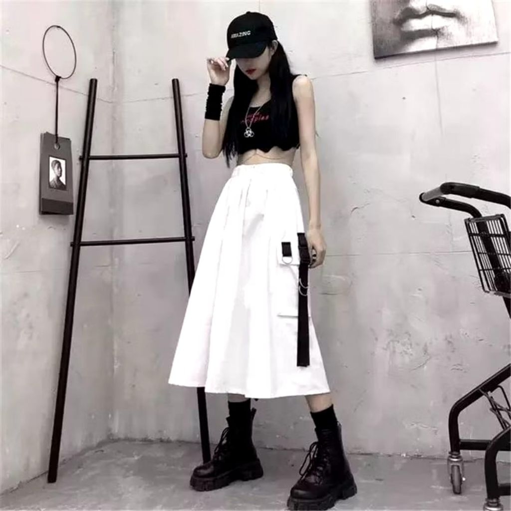 Rok Harajuku Cargo Midi Full Karet Pinggang